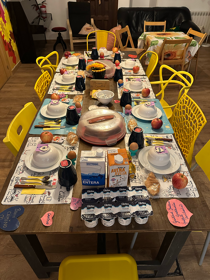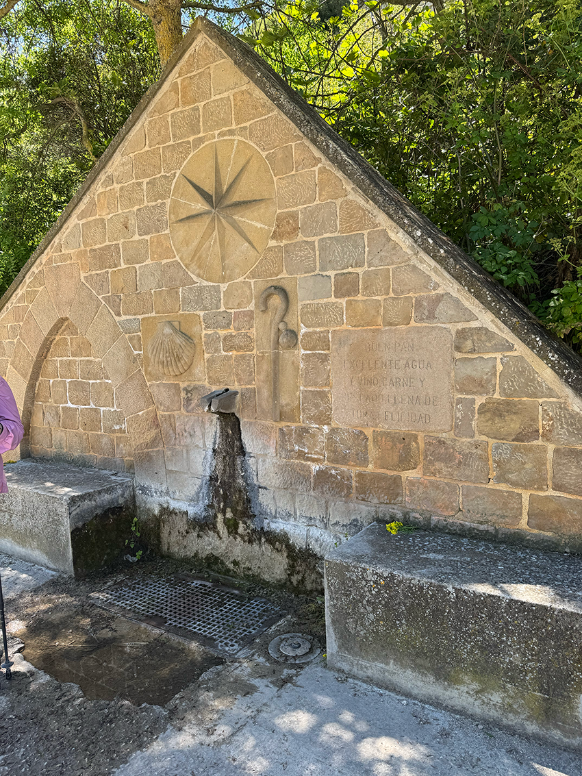 Na het eerste dorpje wandel ik verder naar Cirauqui. Net daarvoor kom ik een Nederlandse dame tegen. We besluiten samen wat te eten en te drinken in het dorp. Aan tafel schuiven drie andere vrouwen aan — supergezellig! We blijven best lang zitten, maar moeten toch weer verder. We spreken af om in het volgende dorpje te lunchen.