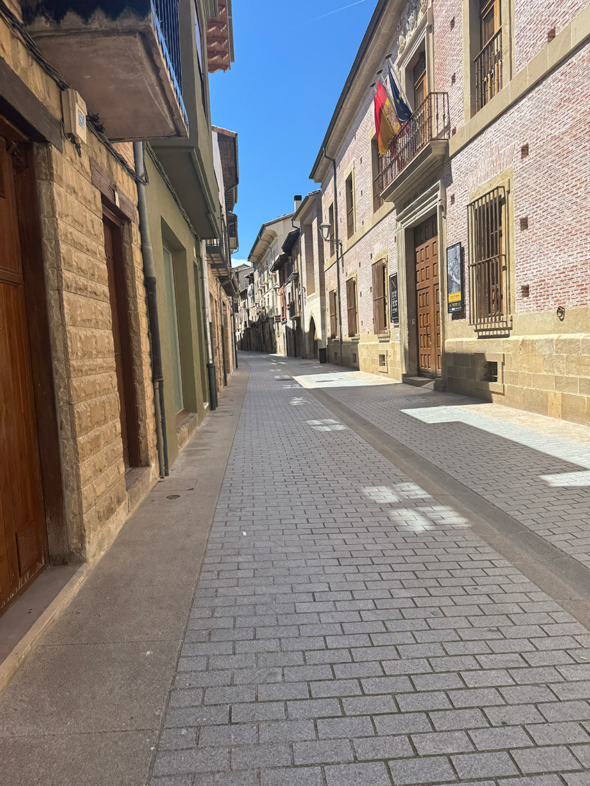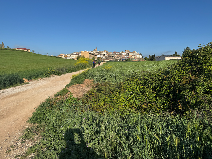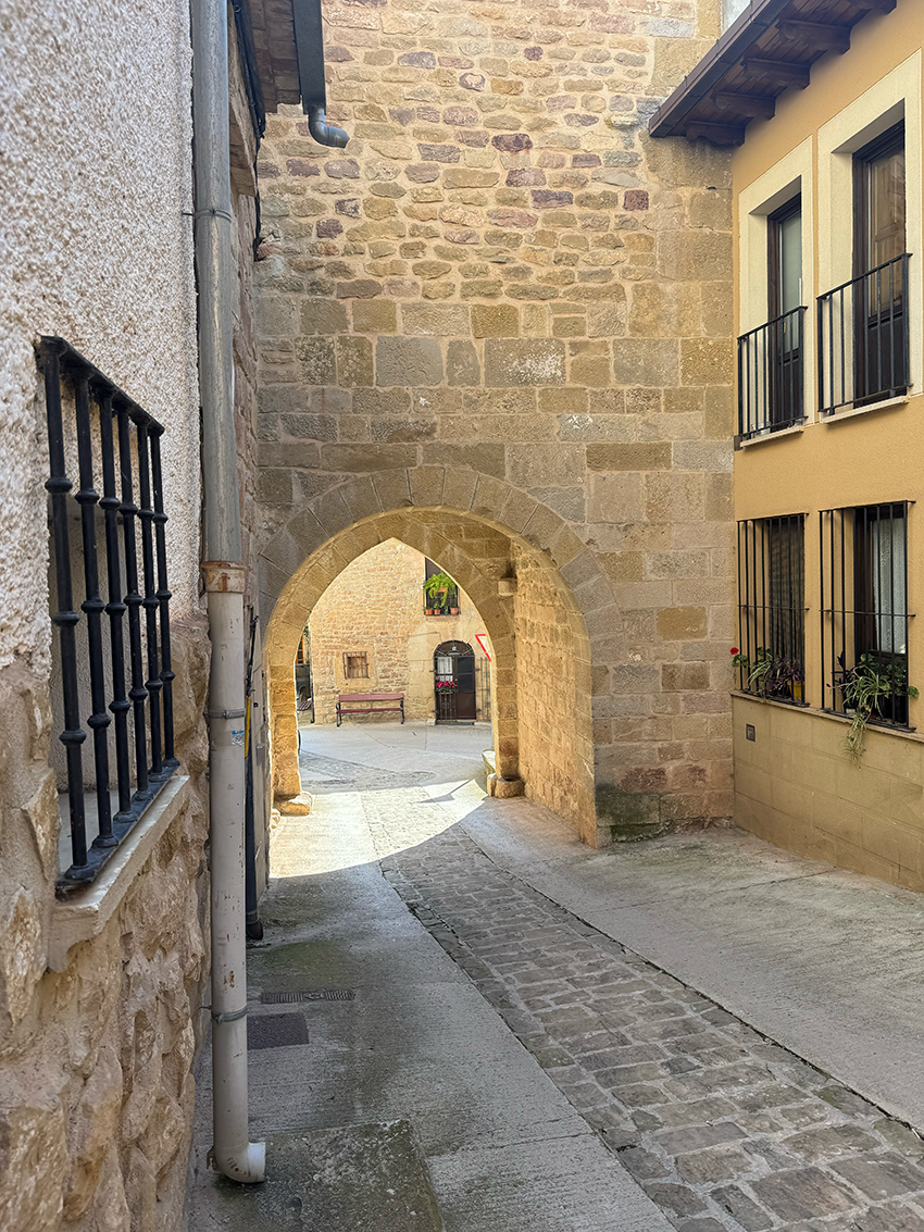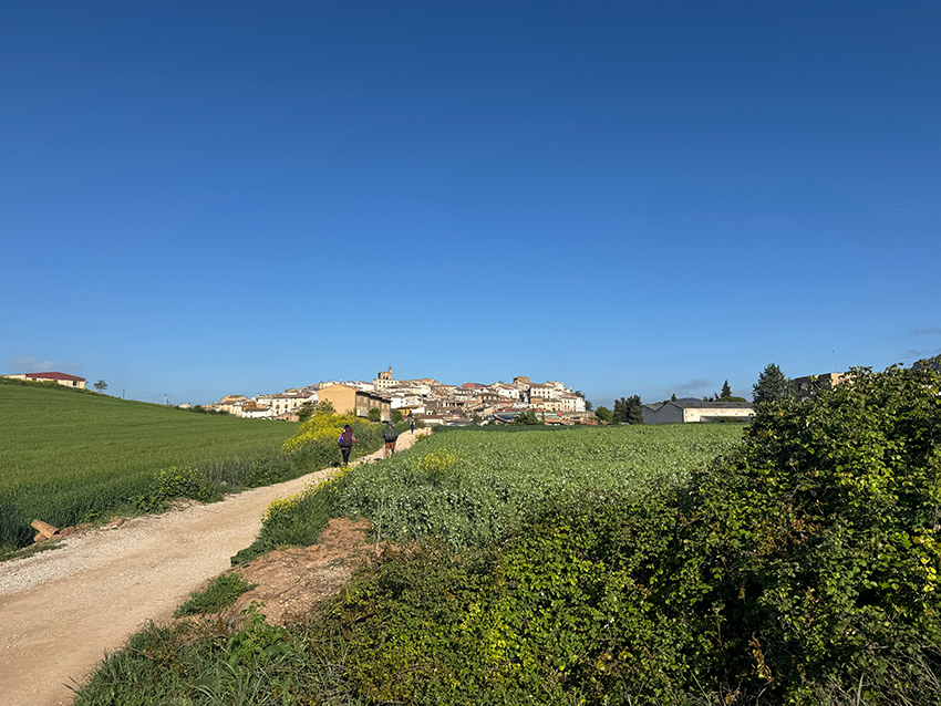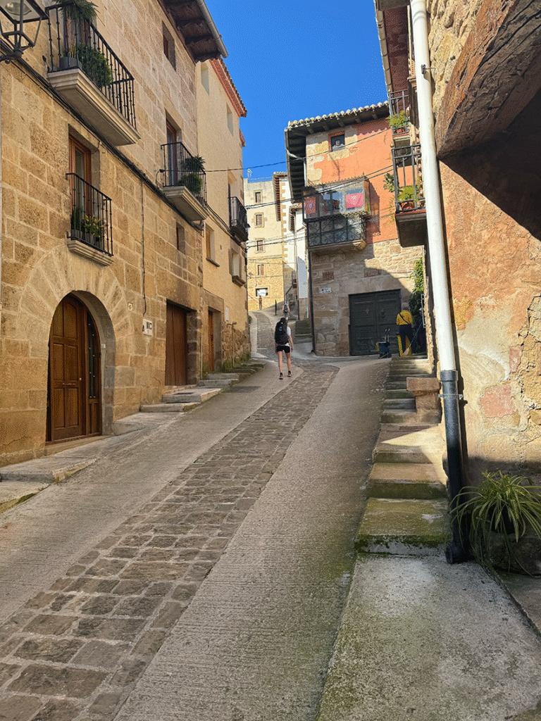 Cirauqui is prachtig. Het ligt steil op een heuvel, waardoor de inwoners flink moeten klimmen. Veel straatjes zijn zo smal dat er geen auto’s doorheen passen. Via de velden lopen we over smalle paadjes naar Lorca. Ook hier is het weer klimmen geblazen. Pittiger dan ik had verwacht, maar de lunch geeft nieuwe energie.